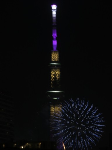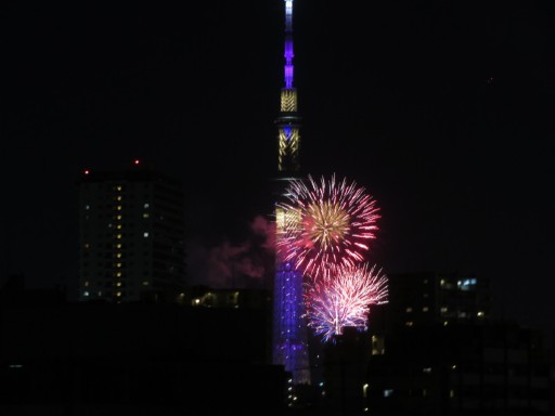 | 隅田川花火大会(47回) 始まる前に雷雲通過し雨も降りだしましたが、打ち上げ開始前までには雨雲も遠退き開催出来ました。 自宅近くの高い所から楽しむ事が出来ました。