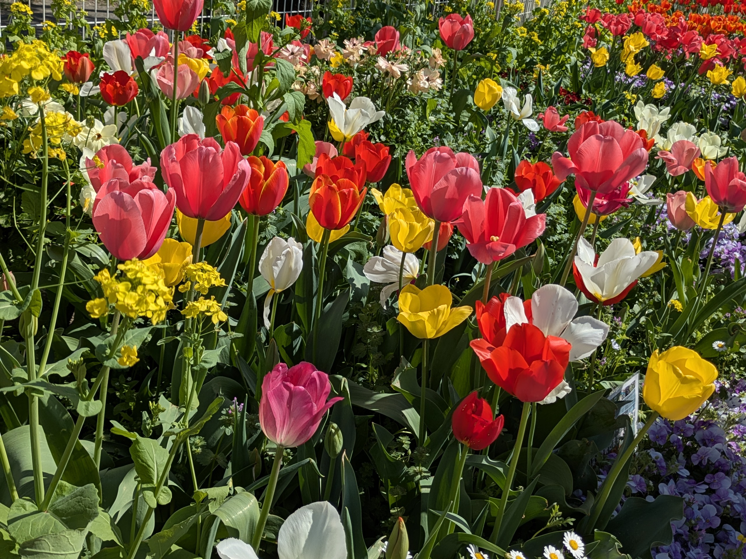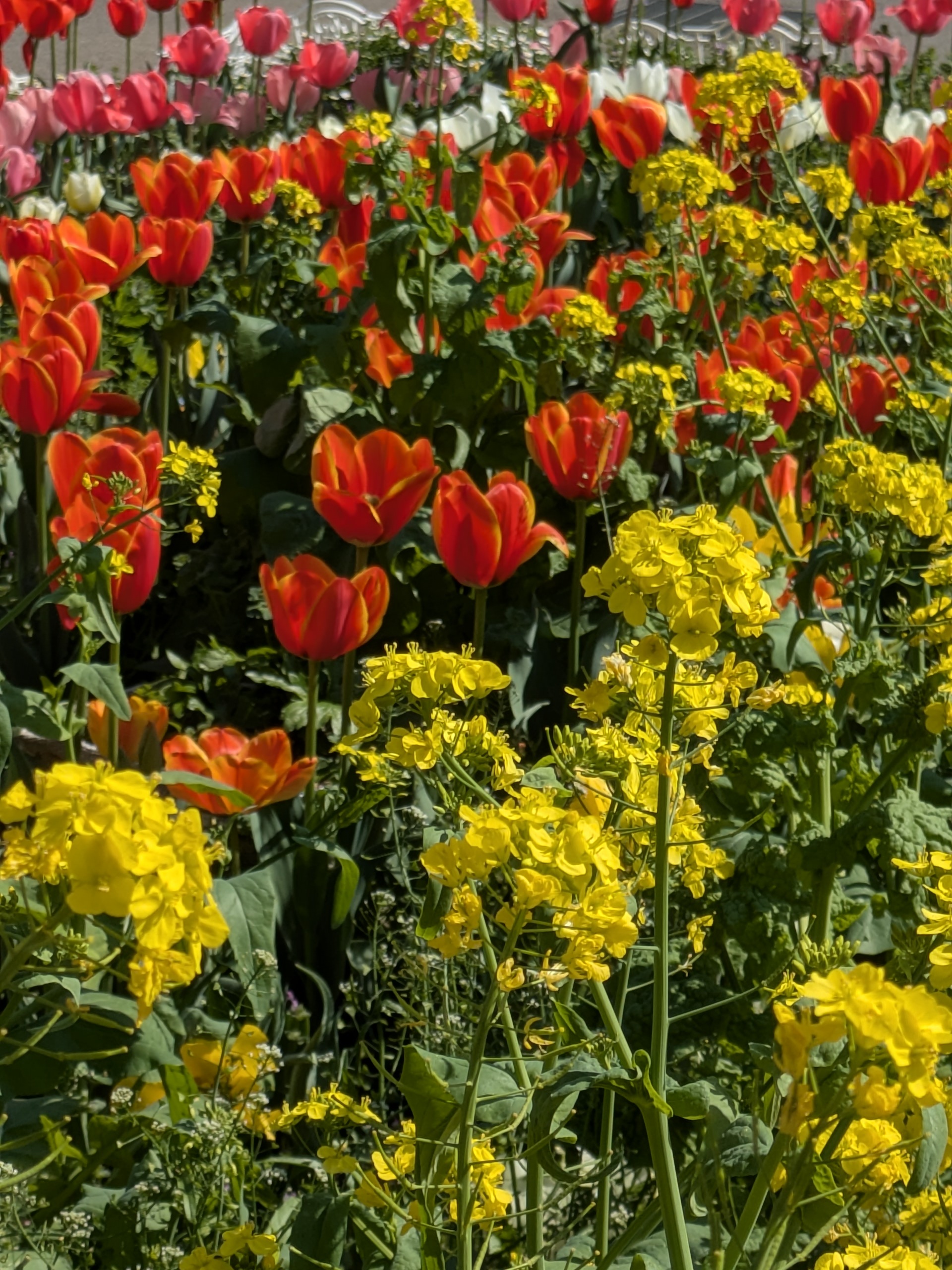 | お花見 各地で桜も満開になり観光客達で賑わっていますね。 有名な桜の名所でお花見も良いですが、観光客や見物人がいない小さな公園で、サクラや菜花、チーリップ、ネモフィラ等をゆっくり花見も良いものです。