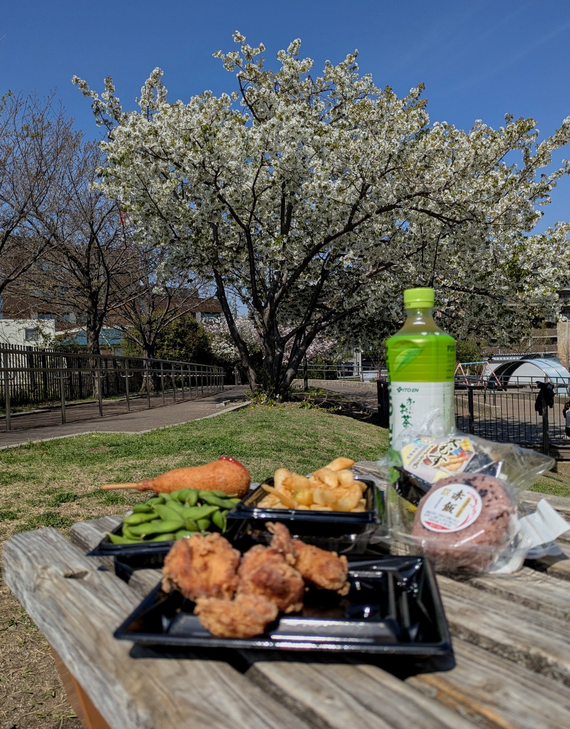 おにぎり、お弁当などを買って満開なサクラを 堪能しつつ小さな公園で楽しんで来ました。 季節のお花っていいですね。